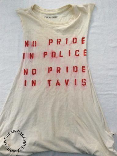 This is the t-shirt that I wore during World Pride—against the Toronto Anti-Violent Intervention Strategy.